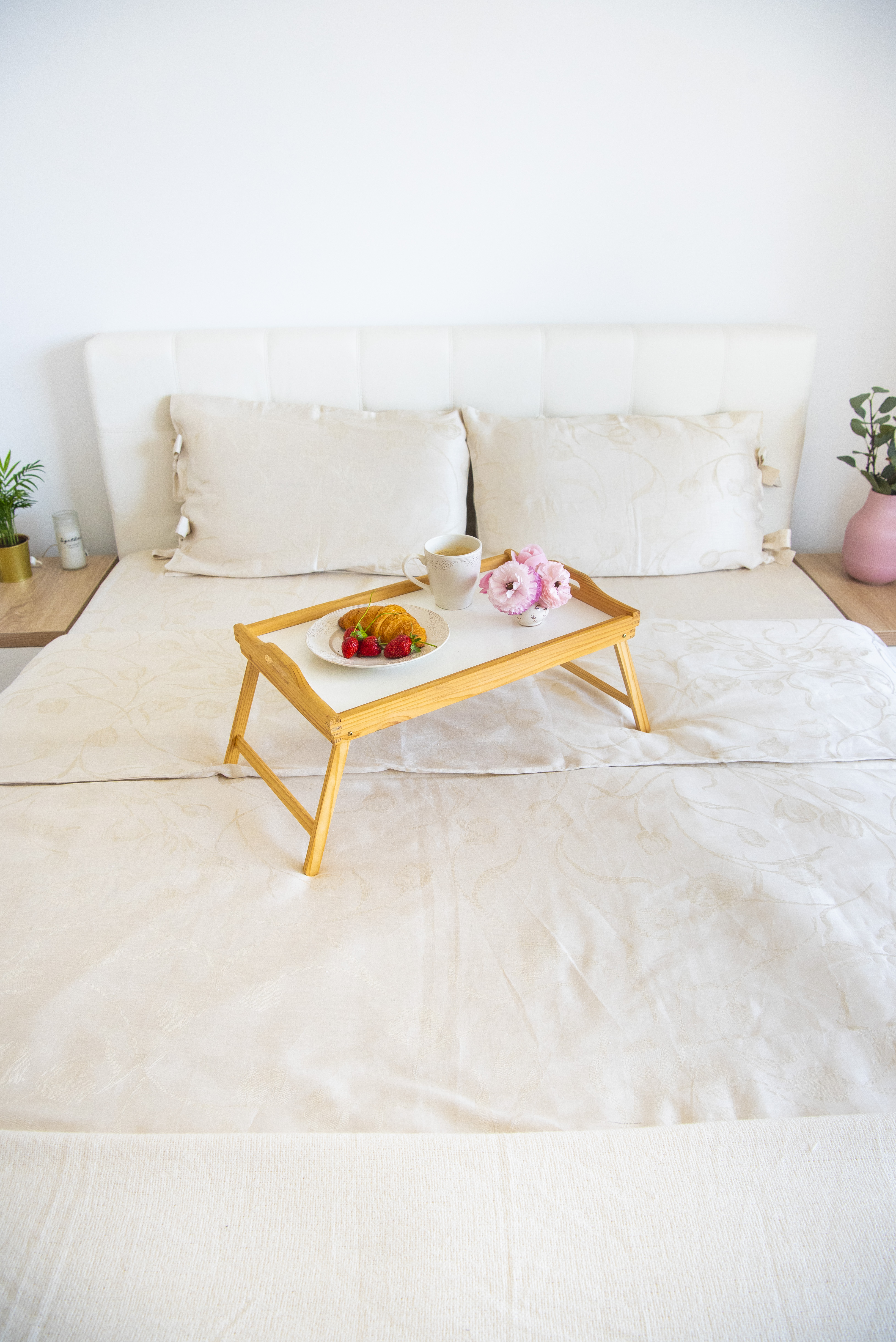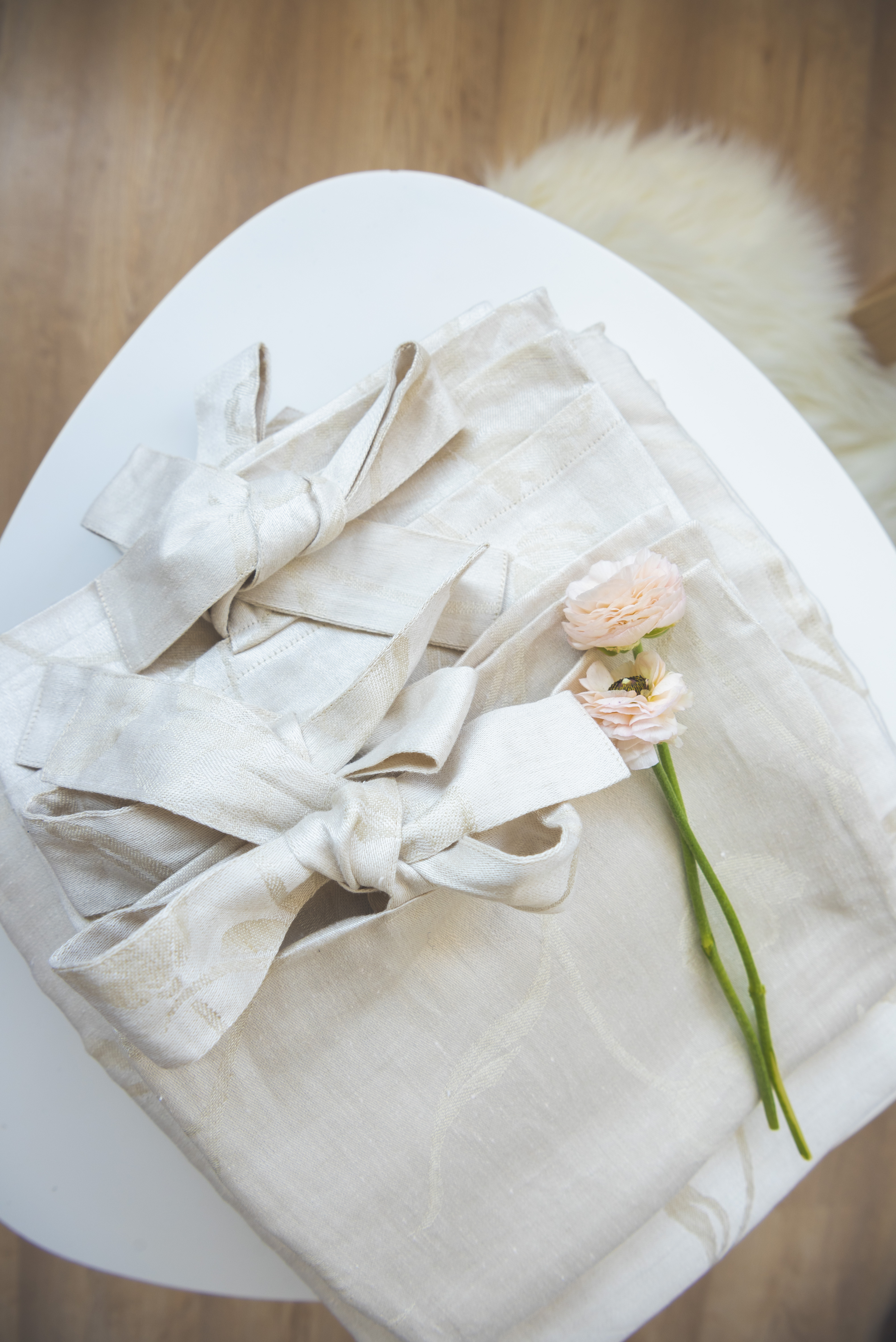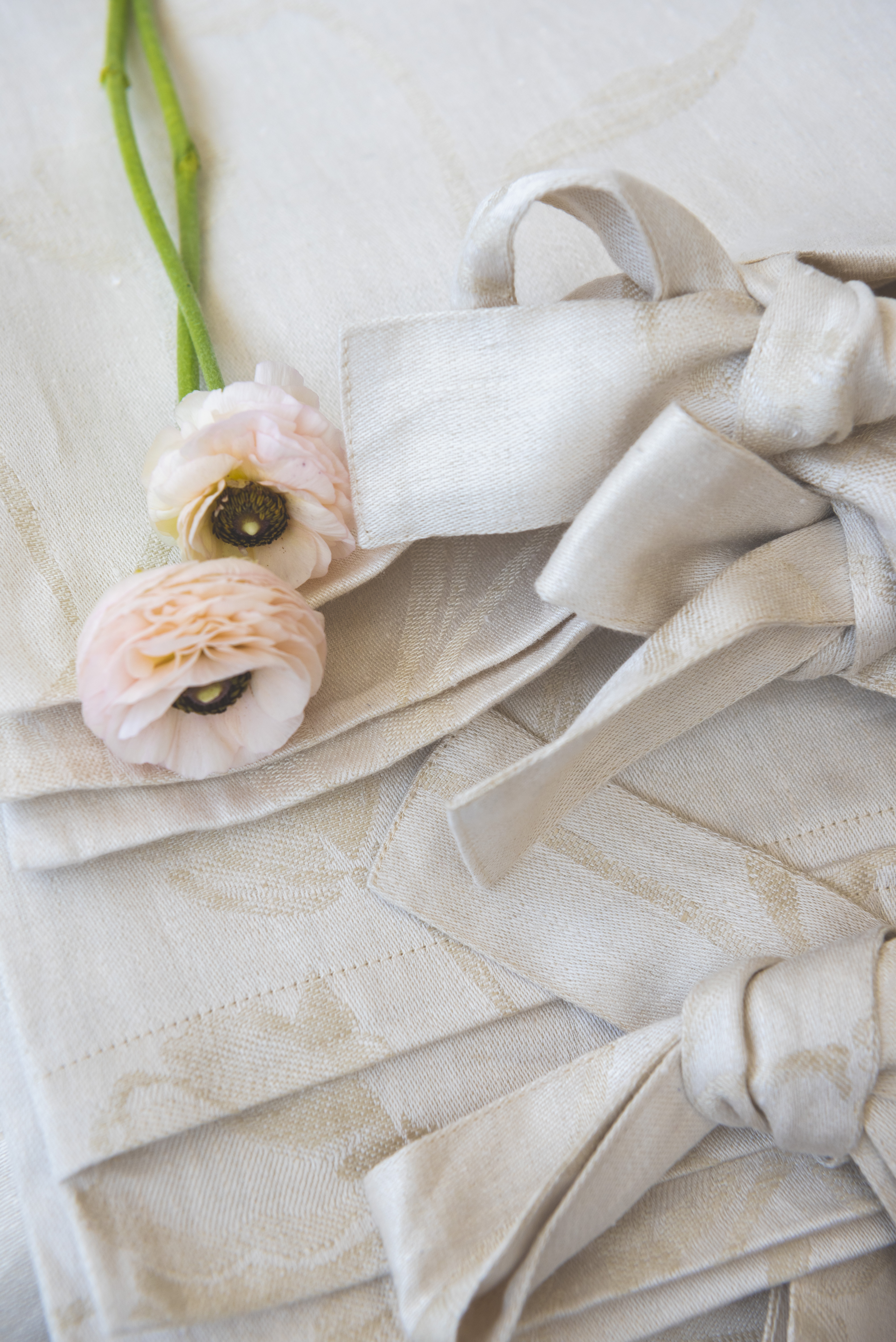 Realizată 100% dintr-un in pur, culoare bej deschis cu un imprimeu cu lalele discret și fin integrat în compoziție. Închiderea pernelor și a pilotei este realizată cu funde mari pentru a o transforma într-o lenjerie cochetă, plină de naturalețe și farmec. Inul este un material deosebit, mult iubit, căci trăiește în echilibru cu ritmurile naturii.