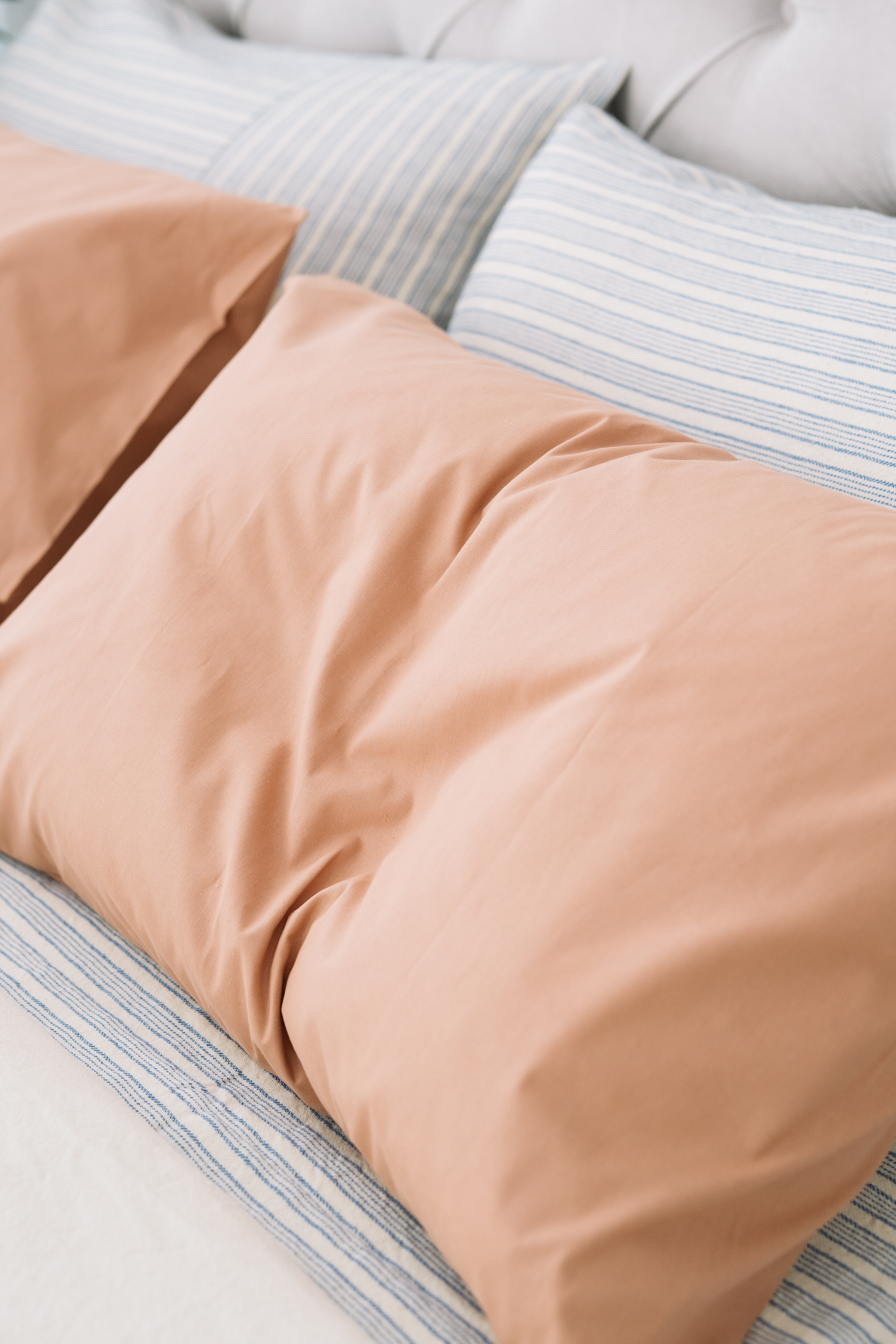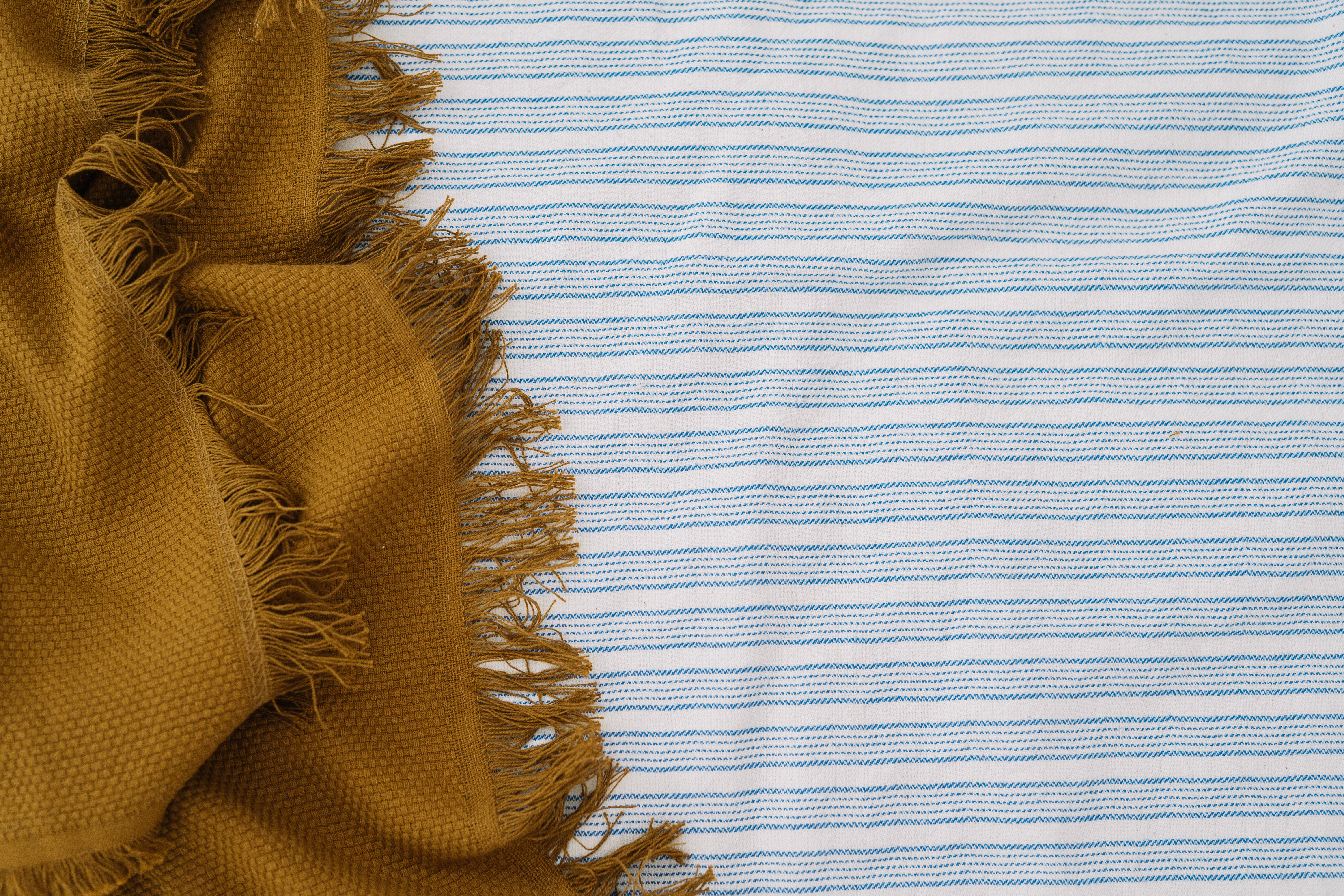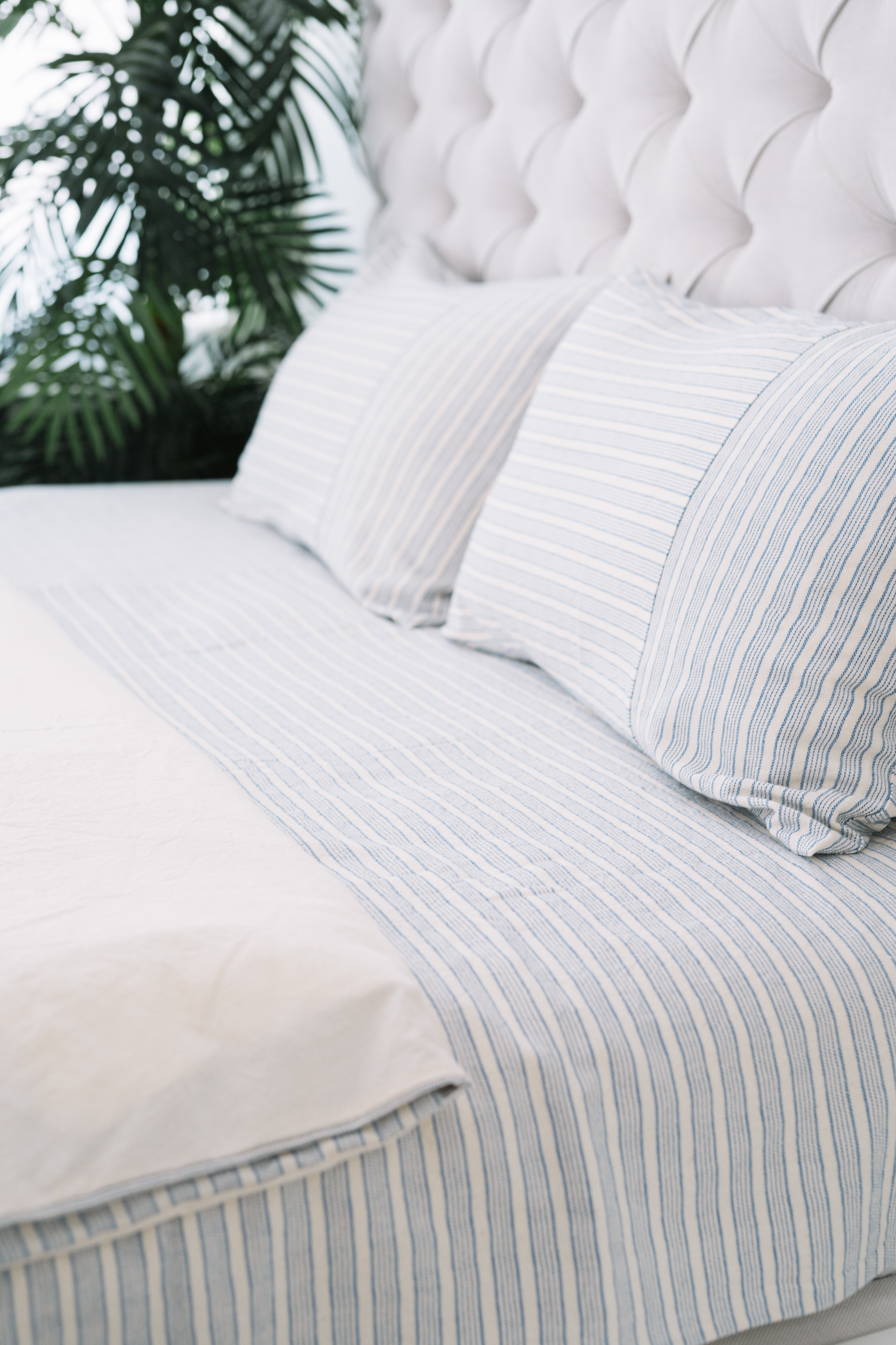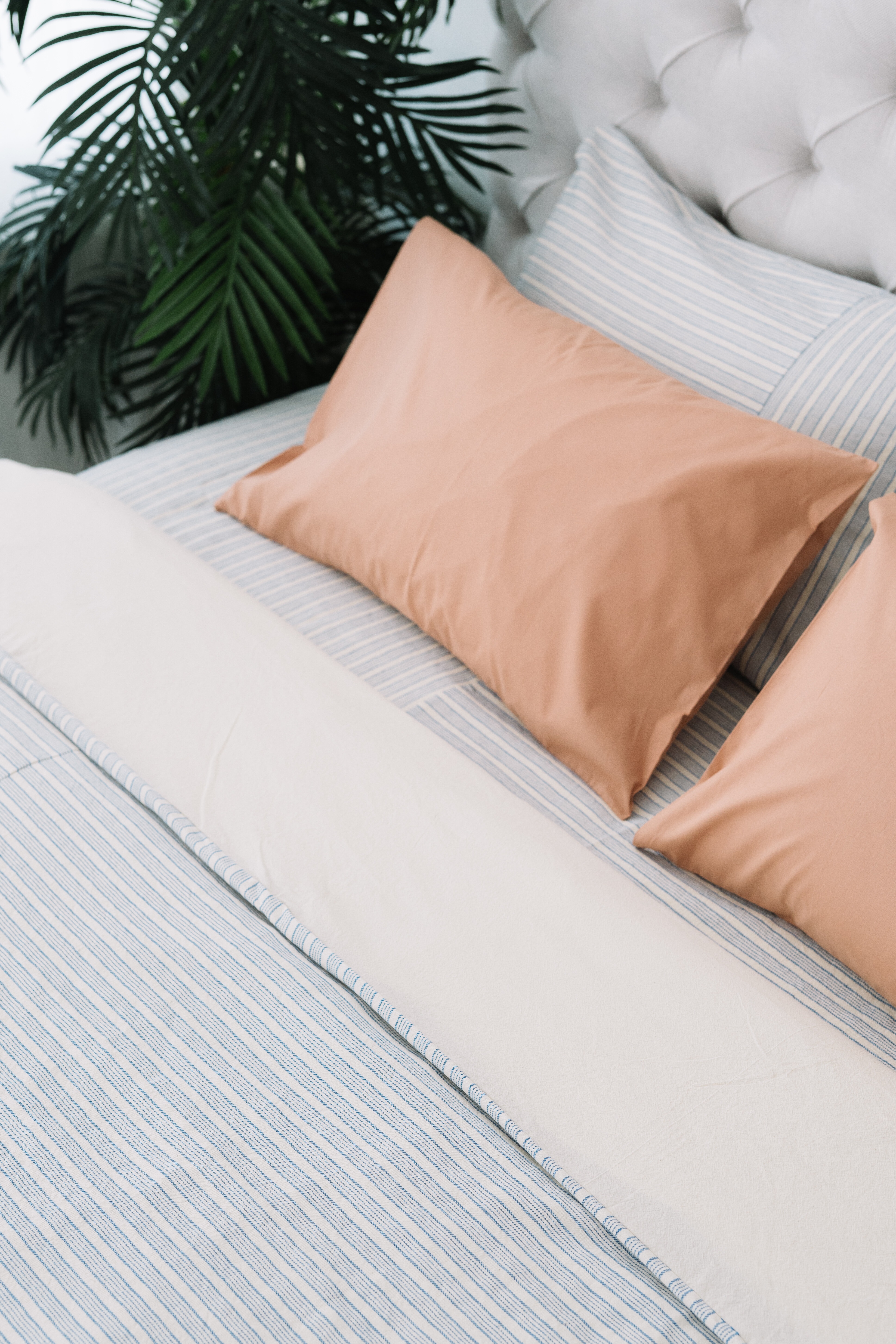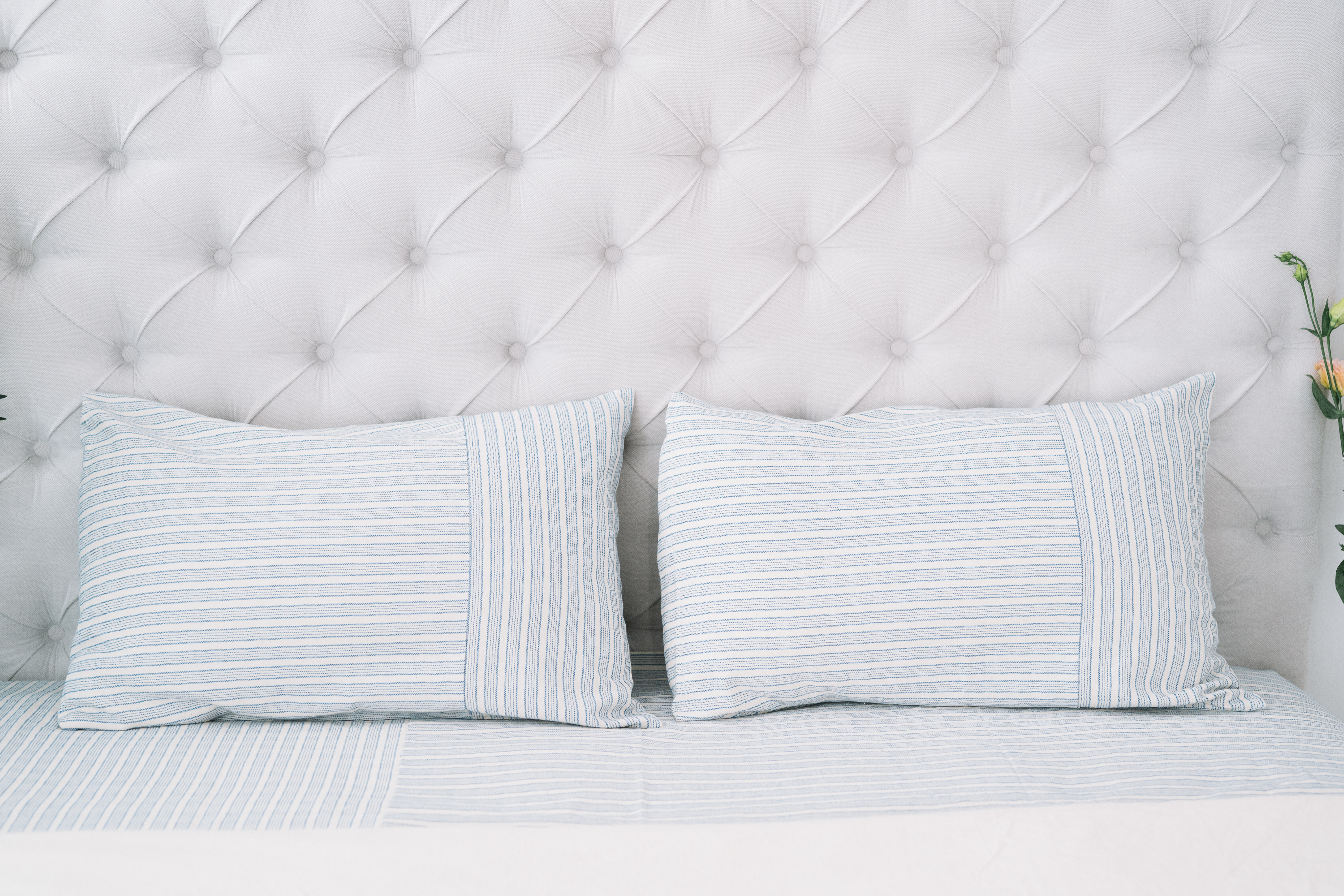 Lenjerie pat mix panză topită, o țesătură bine echilibrată și densă, potrivită atât vara, pentru că acest material absoarbe foarte bine umiditatea, cât și iarna pentru că este o pânză moale și călduroasă. Imprimeul cu dungi albastre pe fond natur, te duce cu gândul la pânza de cânepă a bunicii pe care ne întindeam la soare, la o oază de relaxare, este o lenjerie care își poate face loc în orice dormitor pentru a-ți aduce tihnă și liniște.