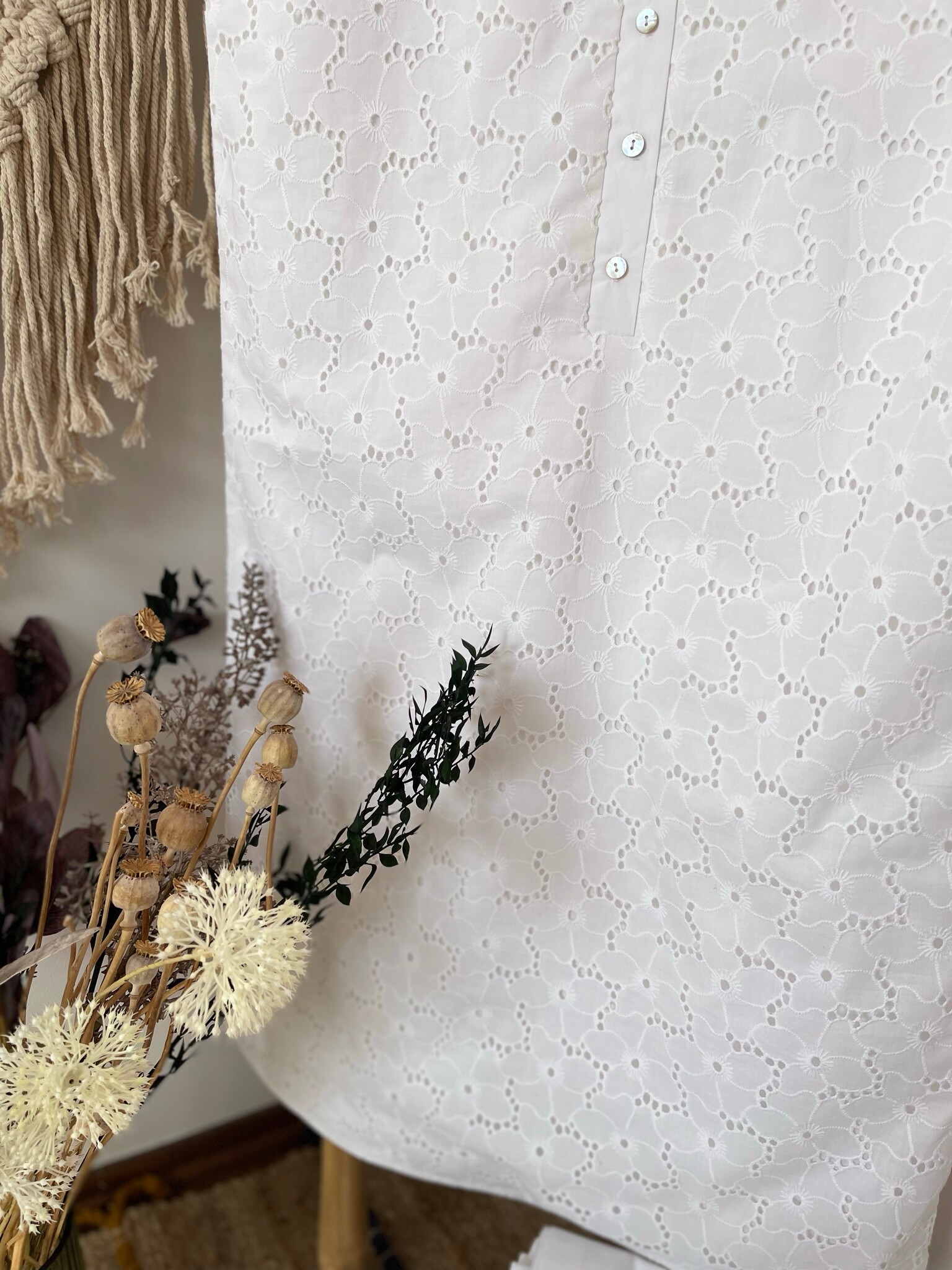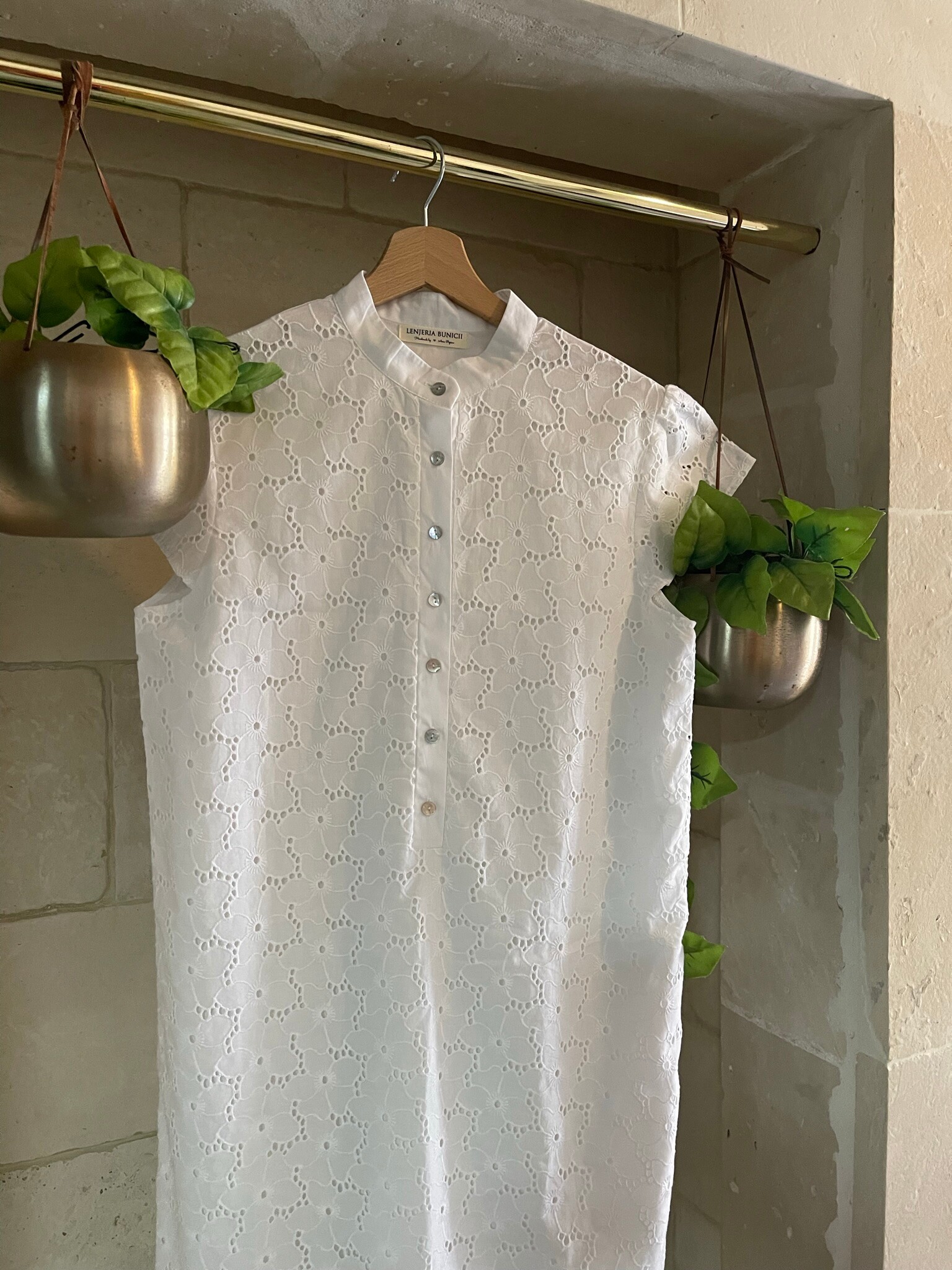 Rochia Amelia a fost luat naștere pentru a te putea bucura de feminitate și delicatețe în propriul tău cămin,pentru a celebra nevoia de manifestare liberă și autentică a femeii. Nopțile de vară vor fi mult mai confortabile, purtând o rochie de noapte realizată din fibre naturale, aerată, ușoară și plăcută pe piele. Bumbacul moale completat de broderia florală deosebită îți vor oferi un aer boem și te vor face să te simți mai încrezătoare și mai frumoasă decât în clasica pijama cu pantaloni.